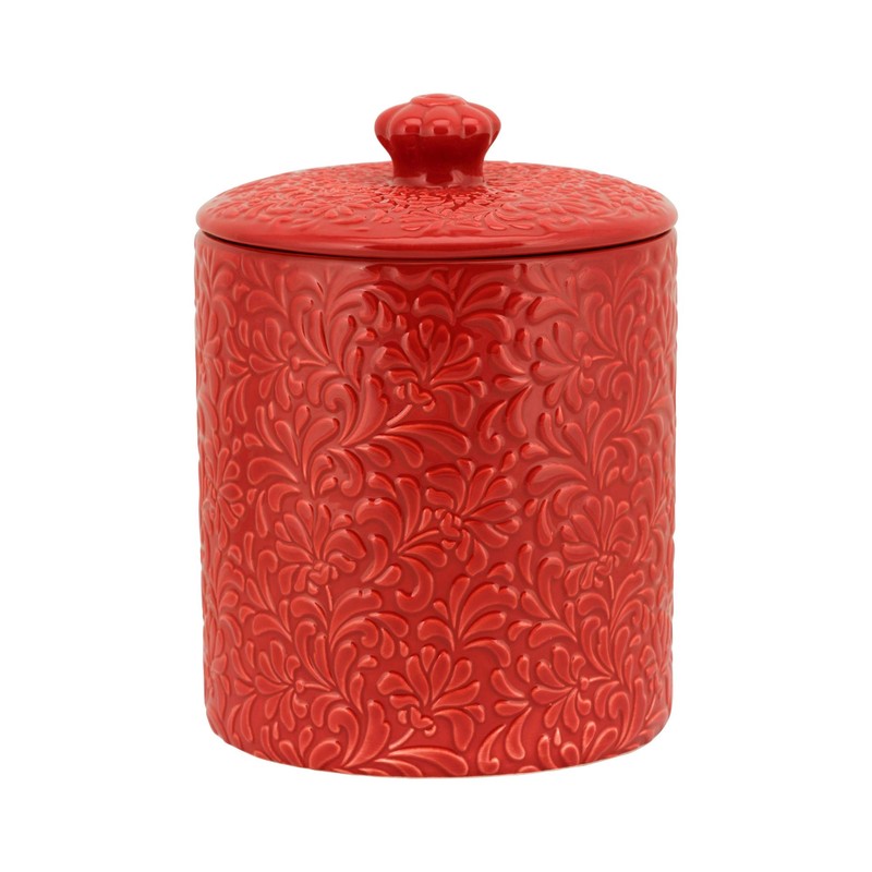Decorative and functional, this stylish 3 piece canister set features an embossed texture, and a ceramic lid with a gasket seal, making them perfect for storing your counter top staples like flour, sugar, coffee or tea. Set includes 1 x 24 oz small canister 4” L x 4” W x 4.75” H; 1 x 34 oz medium canister 4.75” L x 4.75” W x 5.25” H; 1 x 60 oz large canister 5.75” L x 5.75” W x 6.25” H.