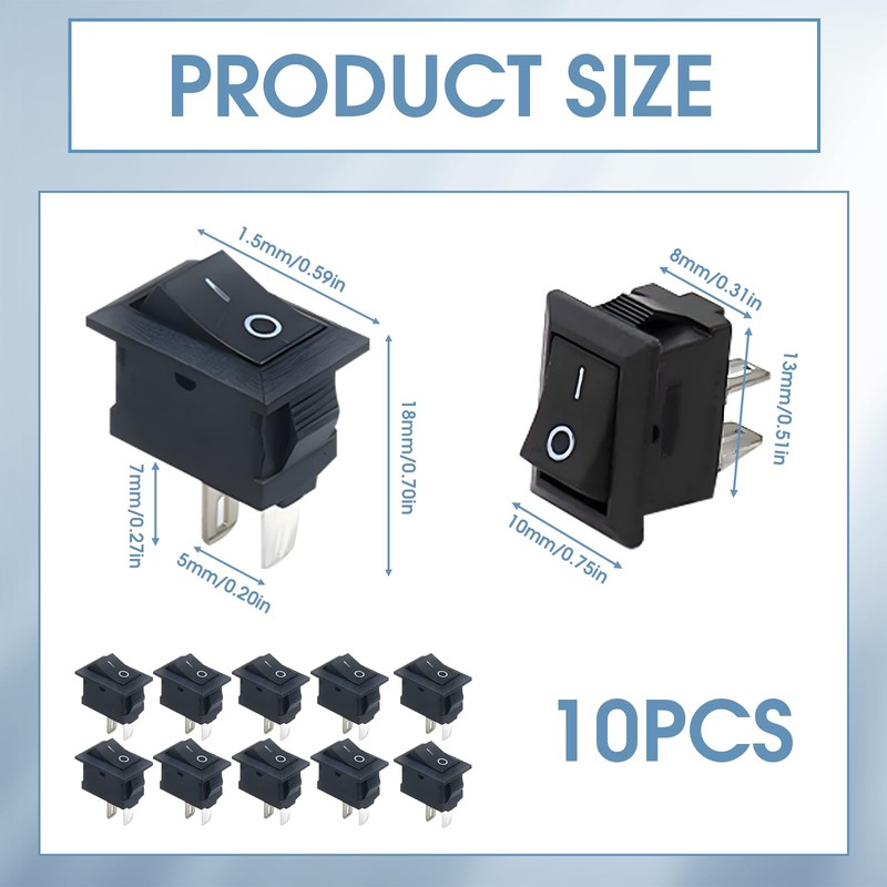 - Einfacher Einbau mit sicherer Verbindung: Der Mini-Kippschalter lässt sich bequem in standardisierte Aussparungen montieren. Das Set enthält die nötigen Kabelsets zur sofortigen Verdrahtung. Die Steckanschlüsse garantieren eine sichere Verbindung – ideal für DIY-Projekte oder industrielle Anwendungen mit Mini-Schalterbedarf.
