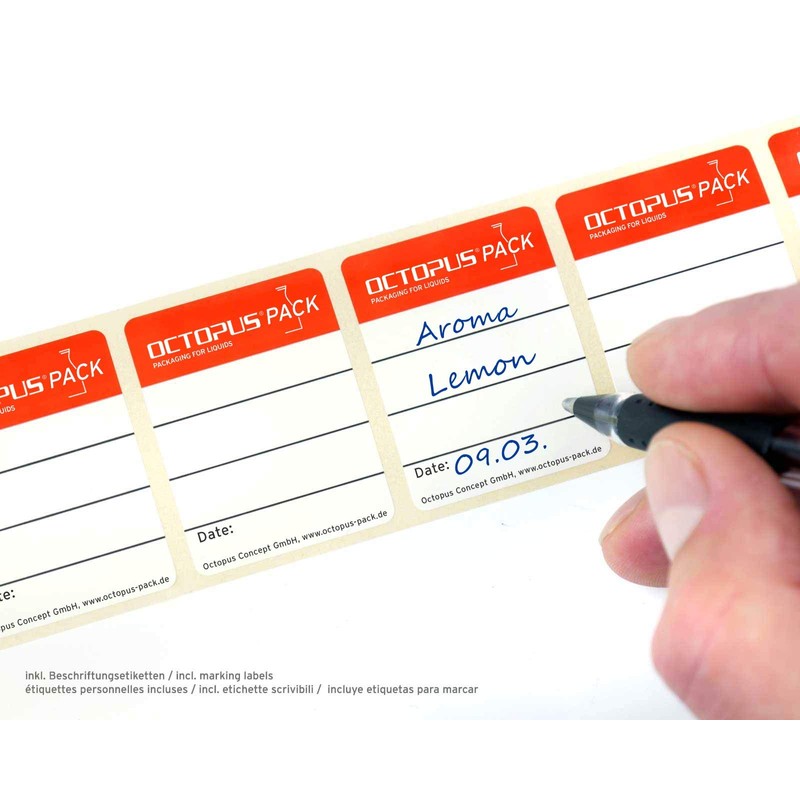 - 10 x 100 ml empty plastic bottles made of HDPE plastic with coloured lids, thread 25 mm, including labels