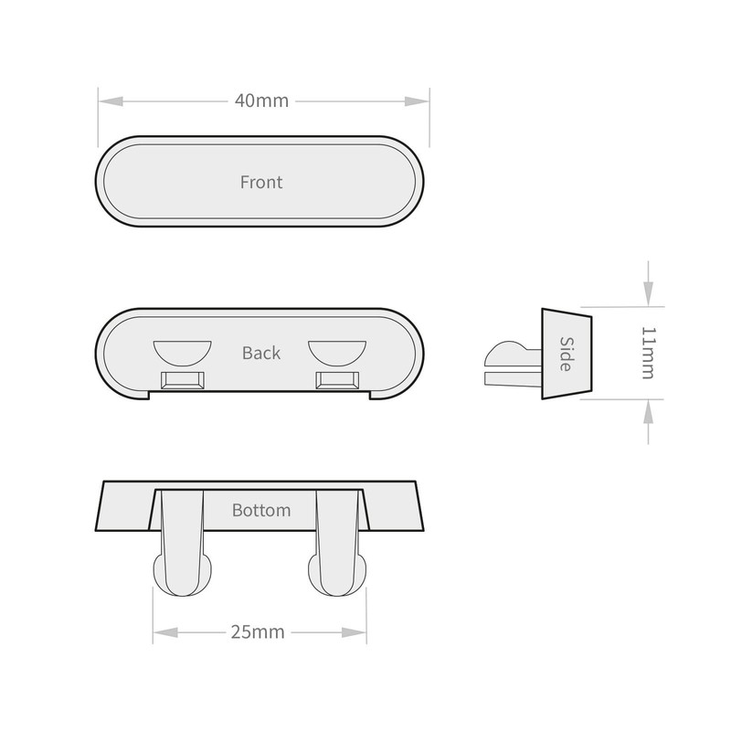 Size (l x h x d): 40mm x 11mm x 6mm (13mm including fixing pegs)