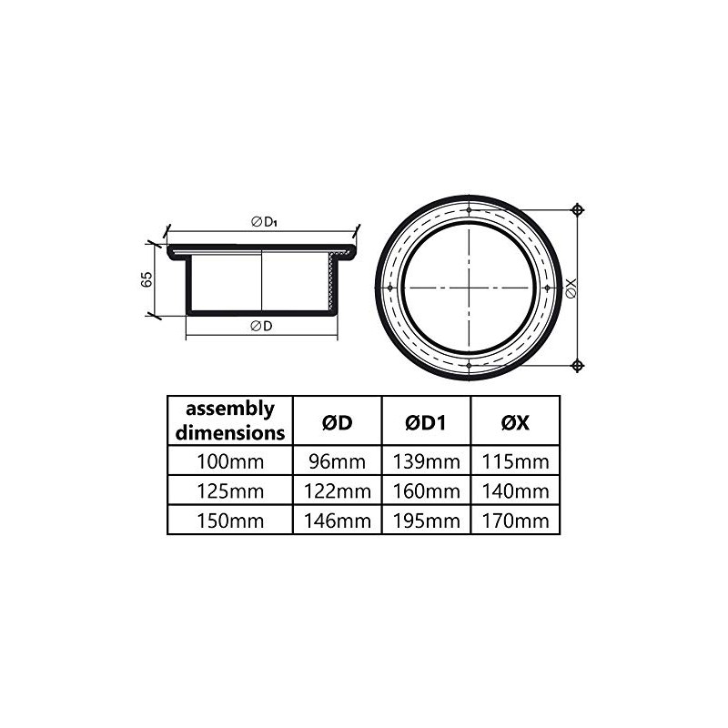 • Diameter: 100 mm, 125 mm or 150 mm.
