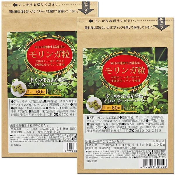 モリンガ粒 沖縄県産100% 60粒×2袋(合計2か月分) モリンガサプリ 国産モリンガサプリ タブレット