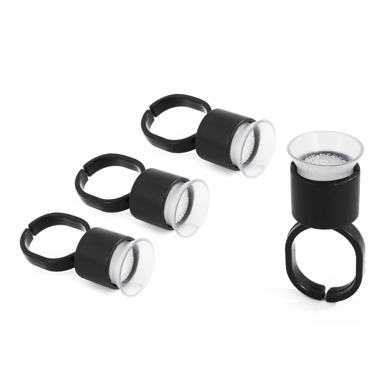 100 anillos de tinta de tatuaje, anillos de pegamento de pigmento de microblading con esponjas de tinta, tapas permanentes de maquillaje, extensiones de cejas, soporte mediano para suministros de tatuaje, suministro de microblading