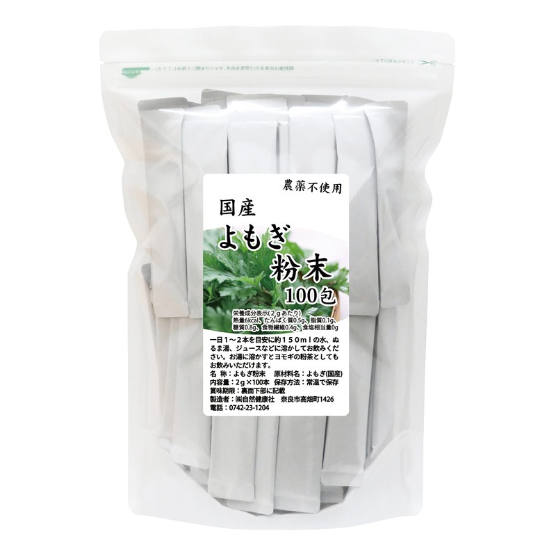- 【使い方】無農薬で育った国産よもぎを香り豊かな粉末にしました。水に溶かしてヨモギ青汁、お湯に溶かしてヨモギ茶として飲める粉末サプリメントです。一日に1、2本を目安に、水やお湯、ジュース、牛乳、豆乳、ヨーグルトなどに溶かしてお飲みください。製菓製パンの材料にもお使いいただけます。持ち運びに便利な個包装タイプ。