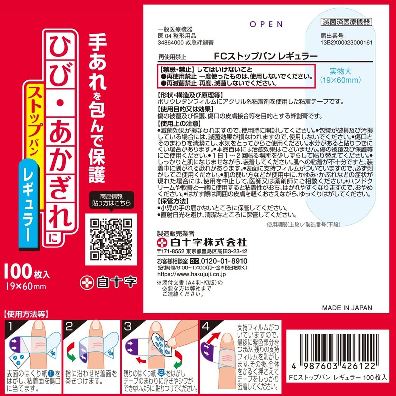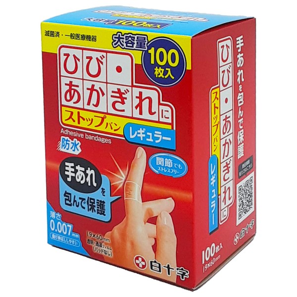 白十字 ストップバン レギュラー 100枚 ひび あかぎれ 防水 大容量 一般医療機器