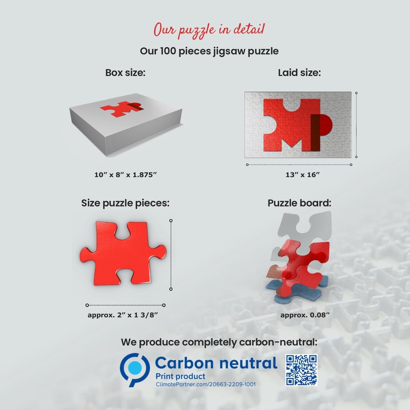 - 100%アメリカ製。 100 ピースのジグソーパズルはすべて米国で製造されています。