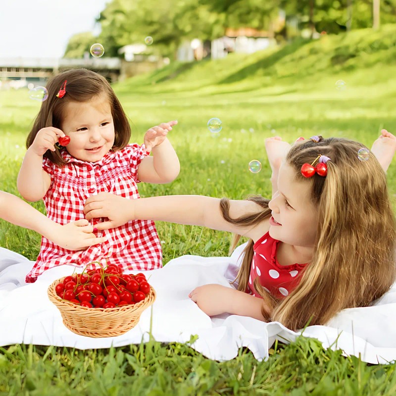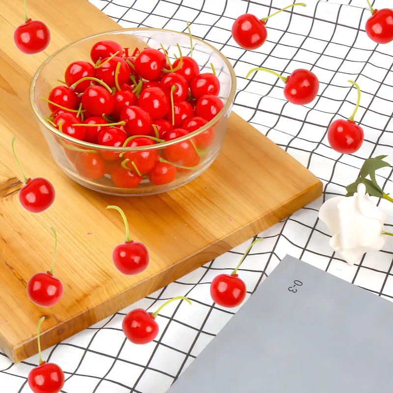 - Apariencia realista: Elaboradas con atención al detalle, estas cerezas imitan el color vibrante y la textura de las cerezas frescas, ideales para fotografía y estilización.