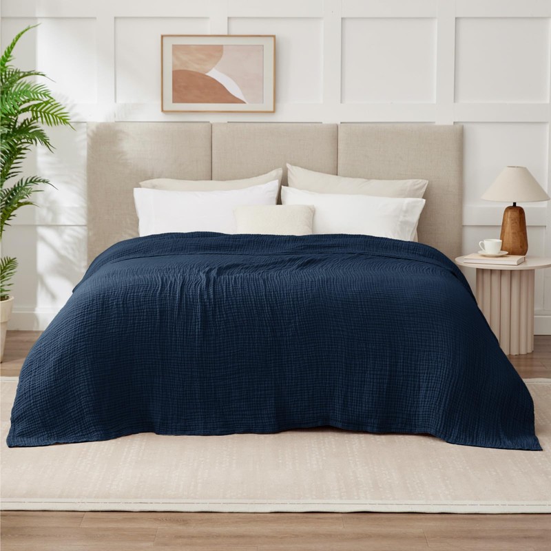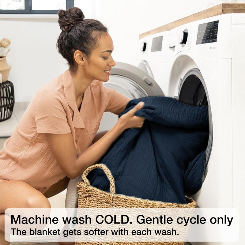 100% Cotton Muslin Blanket Large 50" x 70", 6 Layers Breathable and Lightweight Navy Throw Blanket for Couch, Soft Quilt Bedspread, Gauze Blanket for Adults All Season, Navy, Dark Blue