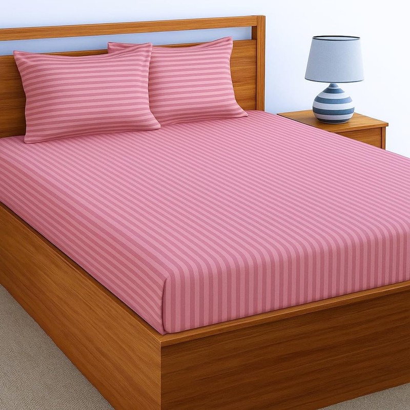 100% Cotton Satin Stripe Bed Sheet, 400 Thread Count Premium Cotton Bedsheets for Home, Hotels & Guest House, Resorts etc. with 1 Pillow Cover Size - (Rose Gold, Twin 60" x 90")