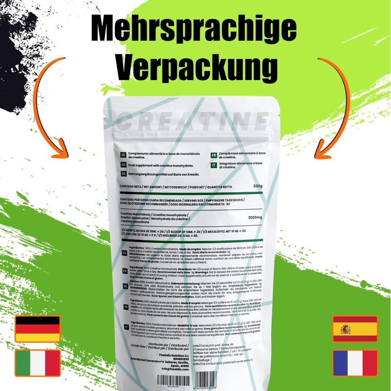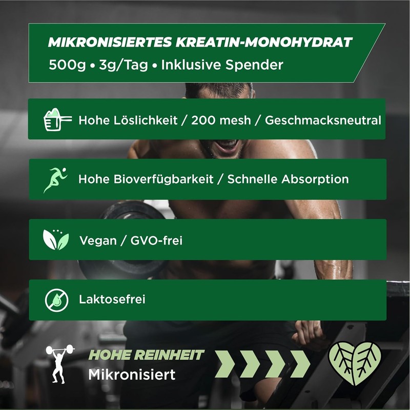 🌟 Premium 100% Creatine Monohydrate – Micronized for better absorption and water solubility. Our creatine is 200 mesh, ensuring fine quality. It's lactose-freeGMO-free, and suitable for vegetarians and vegans.