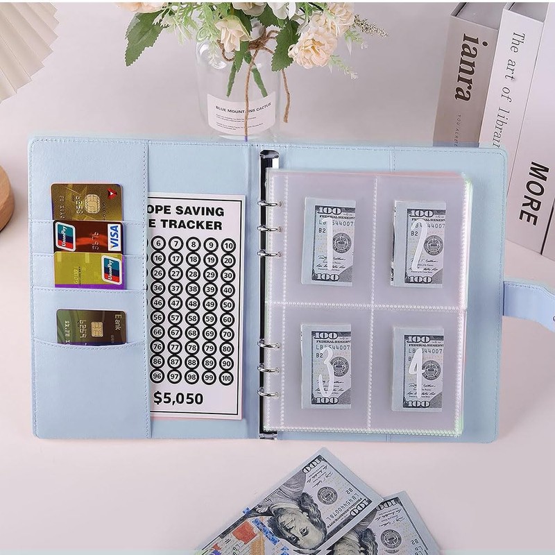 - EASY TO CARRY AND USE:The cash binder is the right size for you to take it anywhere. The transparent inner volume consists of 25 pages. There are 4 card slots on theof each page, a total of 100 card slots. A rich combination of accessories allows you to complete records anytime, anywhere. This is a great budget binder.