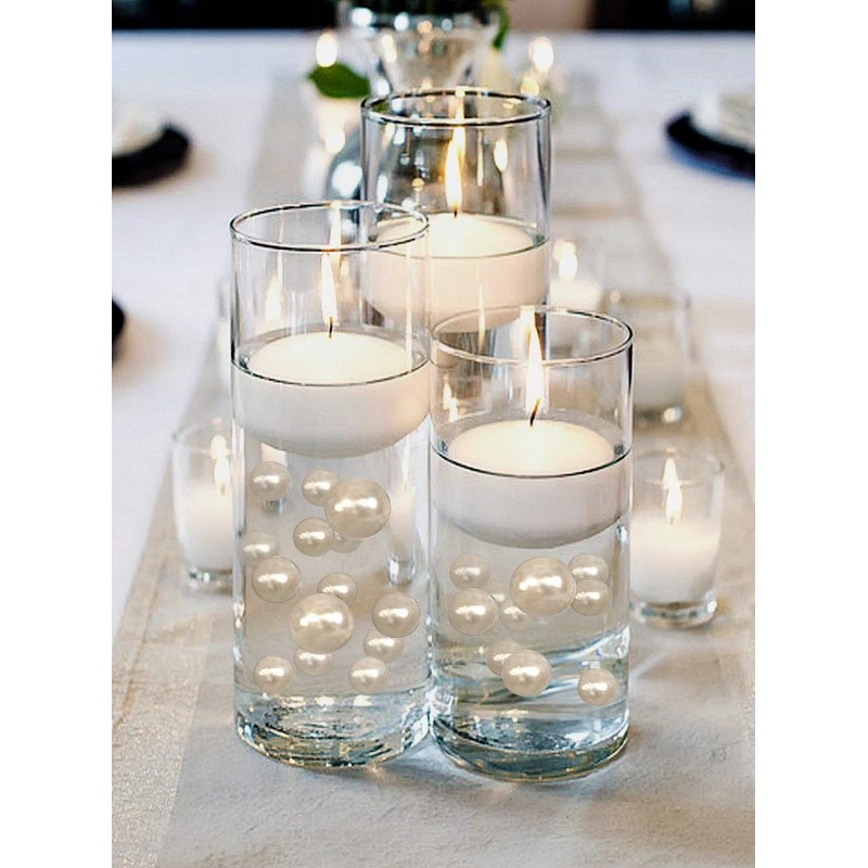 • Fills 2 gallons of 100 Floating Pearls, Gems, and the Transparent Water Gels for your vases. No hole Ivory/Off White/Champagne Pearls in: 50 Pearls - 4 (28mm/1.10"), 12 (20mm/0.75"), 34 (14mm/0.5") and 50 Sparkling Ivory Gems (0.75"). Plus our exclusive Gels Floating Kits include 2 Packets of the most unmatched Transparent Water Gels with 2 Measured Prep/Storage Bags. So no guessing and best results!