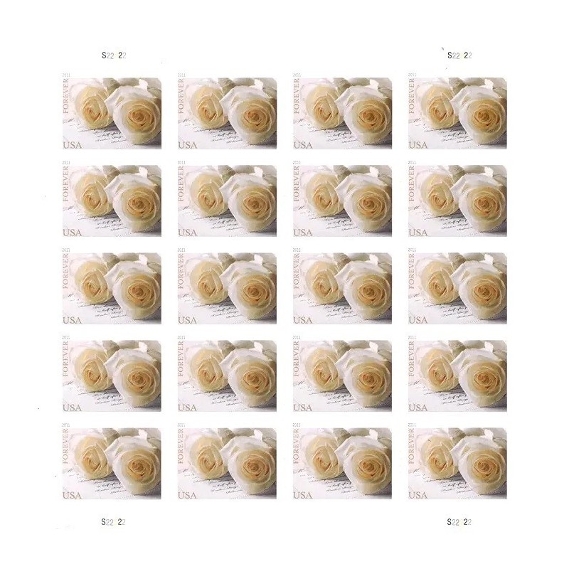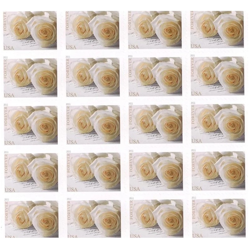 100 FOREVER STAMPS 5 SHEETS White Rose Wedding Invitations