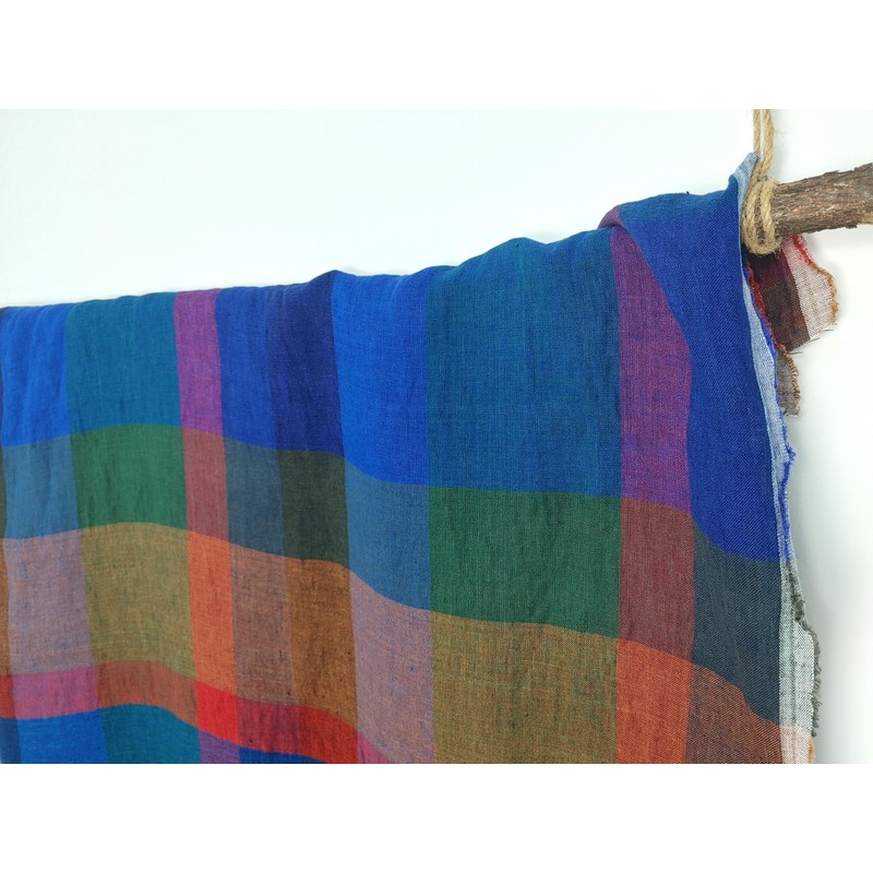 Bring vibrant color and natural texture to your sewing projects with this 100% linen plaid fabric. Featuring a bold, yarn-dyed check pattern in rich shades of blue, green, red, and orange, this fabric blends classic design with contemporary flair. Woven from flax fibers and pre-washed for a soft, breathable feel, it's ideal for lightweight garments like shirts, blouses, dresses, or scarves, as well as for DIY home projects. The natural slub texture of linen adds a touch of rustic elegance, while the smooth drape makes it easy to work with. Composition: 100% Linen Weight: Lightweight – 149 g/sqm (4.4 oz/yd²) Width: 52 in (132 cm) Handfeel: Pre-washed, soft Elasticity: None This fabric offers the timeless beauty of linen with vivid, modern color—perfect for makers who value both quality and creativity.