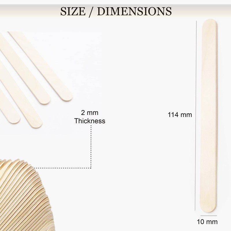• SIZE : The dimensions of the Craft Sticks is 114 X 10 X 2mm .The extra thickness give them more durability and strength. They are comfortable to grip and have no foul smells and can be used in the kitchen and garden. They fit perfectly into ice lolly moulds for making ice lollies.