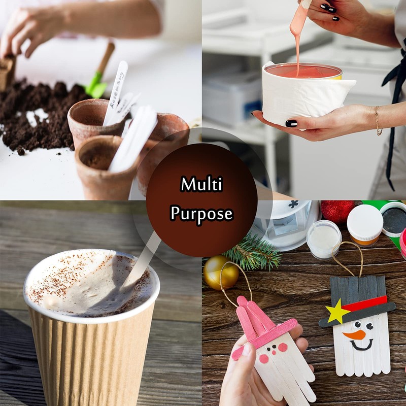 • MULTI USE & DIY PROJECTS : The Lollipop sticks can be used for a variety of purposes such as Plant Labels & Identifiers , Waxing Sticks, Facial sticks in the beauty parlour or home , Wooden Coffee Tea Stirrer and ice cream / dessert making, Tongue Throat Examination & Depressors, paint stirrer and mixer.For use in party crafts, birthday art, home decorations and school projects.Plant support sticks,Garden Identifiers, cake pops.