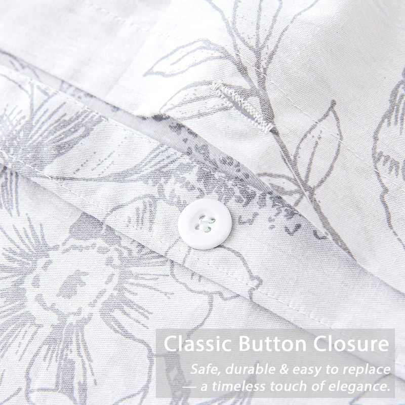 - Chic & luxurious Floral Prints - The Grayish white duvet cover is embellished with flowers, leaves and branches in white with gray tracings. The delicate yet luxurious floral pattern can make your bedroom look elegant and vibrant.