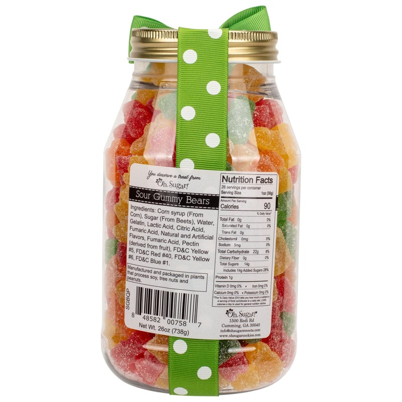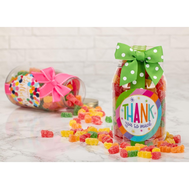 100 North Oh Sugar! Sweets! Thank You So Much - Diagonal Multicolor Stripe 10 Ounce Plastic Quart Jar Sour Sugar Sanded Gummy Bears