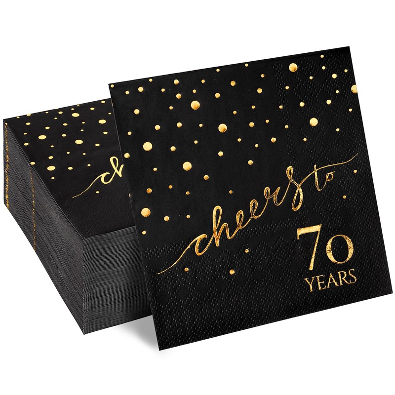 - Elegant Design: These 100 black birthday napkins are designed for a 70th birthday celebration. They feature golden - stamped dots and the phrase “cheers to 70 years” in a stylish font, creating a luxurious and festive look