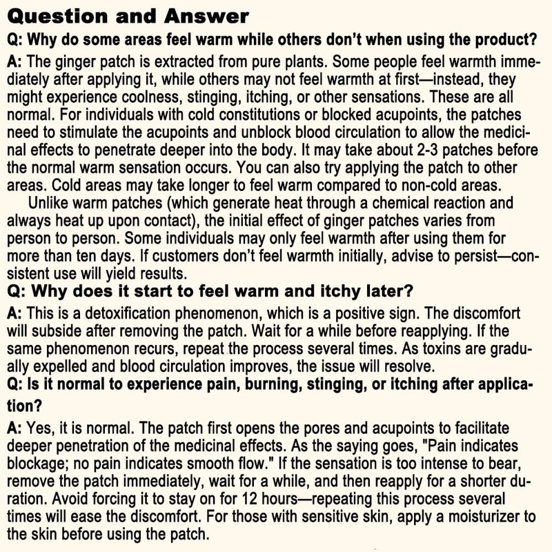 Important Note: Due to individual sensitivity differences, gently remove the ginger patch immediately if the warmth becomes overly intense.