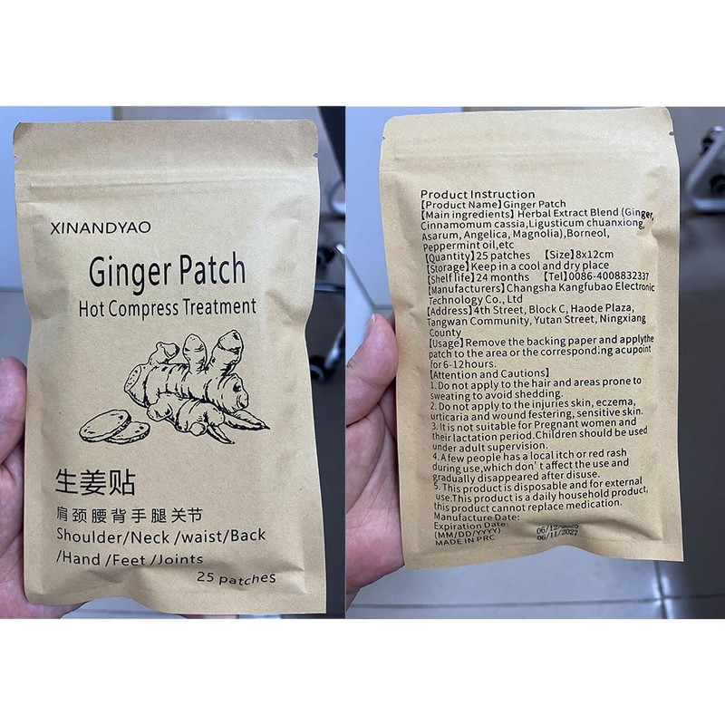 Product use: Clean the affected area, take out one piece of ginger patch and remove the adhesive layer on the patch. Put the ginger patch on the affected area and press gently. Please drink some warm water when using this product. Stick to the same area for two days and stop for another day to let the skin breathe.