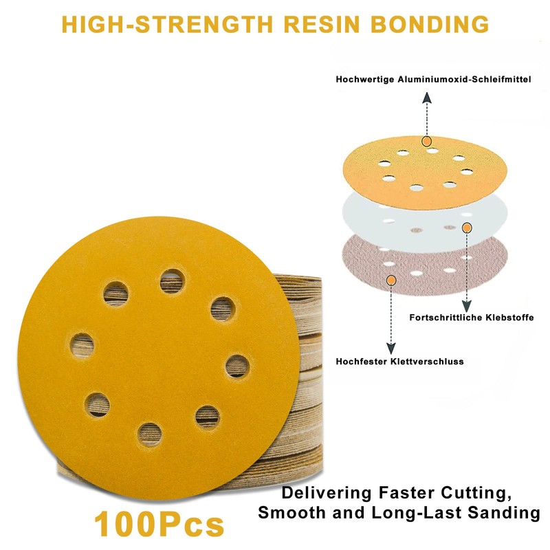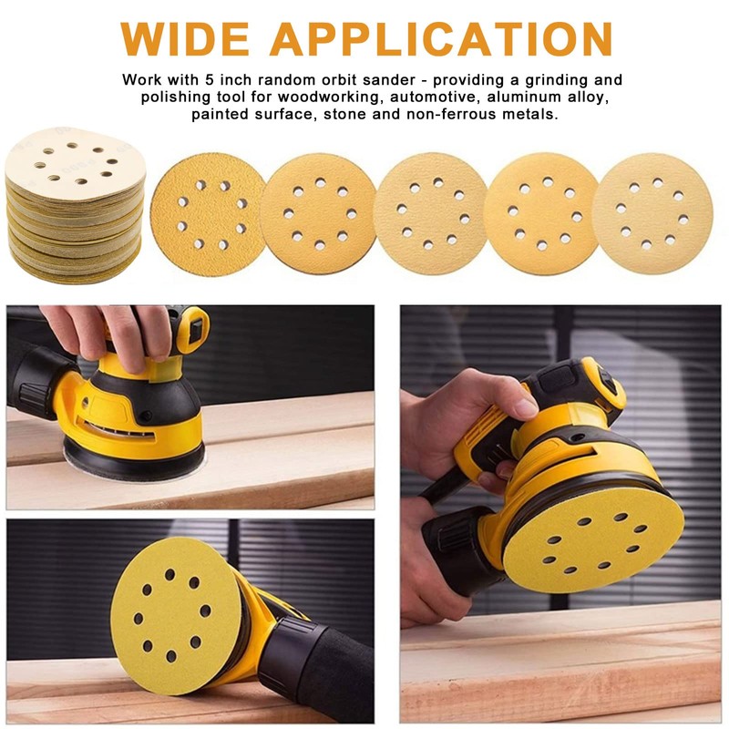 100Pcs 5 inch/ 125mm Sanding Disc 125mm for Random orbital sander pads 8-Holes