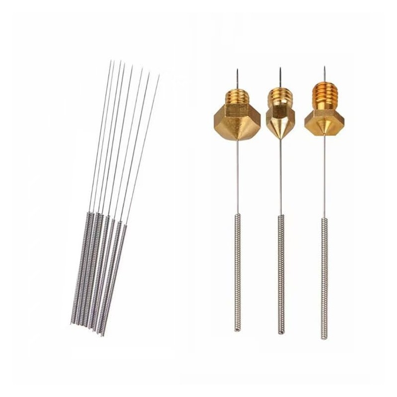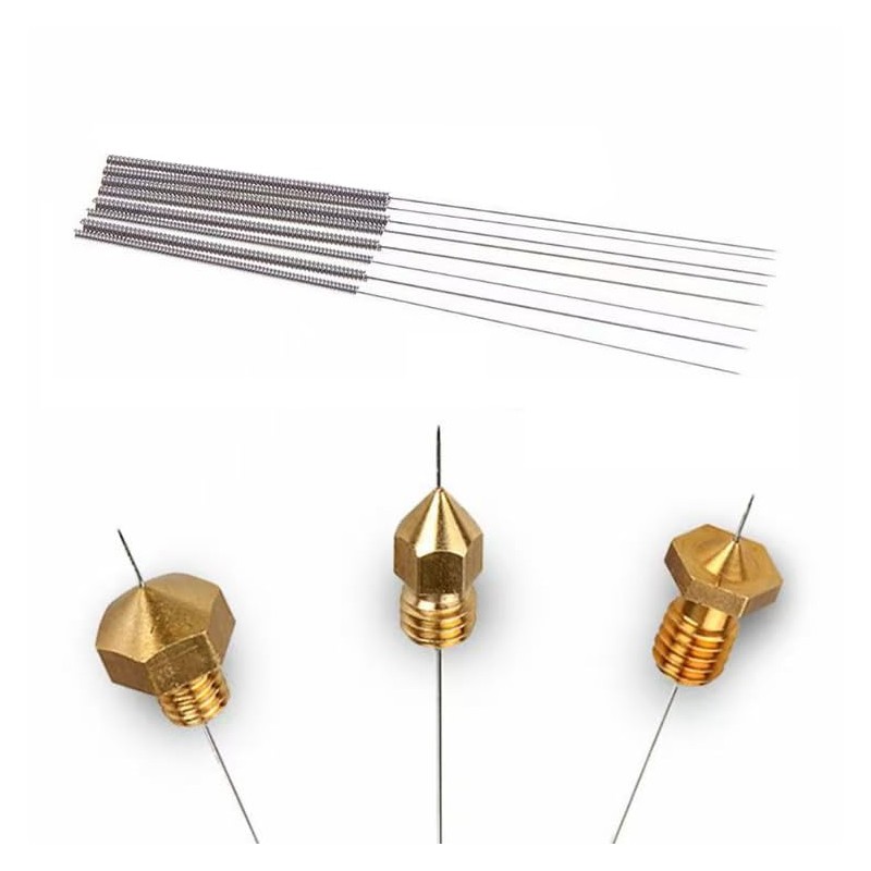 - Package Include: 100Pcs 0.4 mm 3D printer nozzle cleaning needles. Nozzle cleaner 3d printer is made of high-quality stainless steel material, durable and flexible, easy to bend. Total length: 70 mm (The length of shank: 30 mm, The bit length: 40 mm)