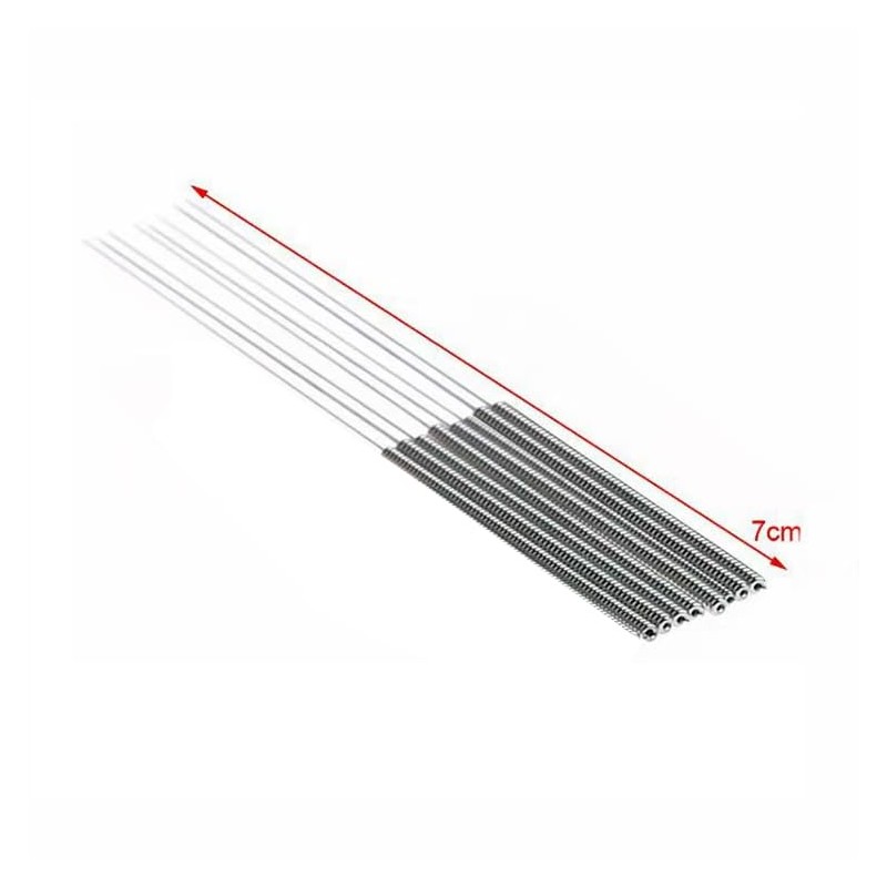 such as MakerBot, RepRap, Creality CR-10, Ender 3, Prusa I3, Anet A8, E3D, MK8, MK10, etc. the 3D printer cleaning needles mainly serves to clean the blocked nozzles. also can use for cleaning other small parts, such as throat and feed gears.