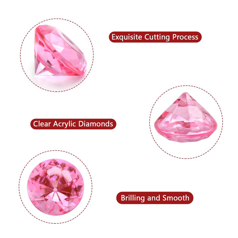 100 PCS Acrylic Diamond Gems, Pink Acrylic Diamonds 1 Inch Acrylic Gemstones Vase Filler Fake Gems Plastic Gems for Home Table Scatters Party, Event, Wedding, Arts & Crafts, Birthday Decorations