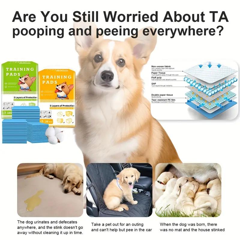 100 Pcs Dog Pee Pads - Ultra Absorbent Leak Resistant Training Puppy Pad With 5-Layer - Pet Supplies For Whelping Puppies & Training Dogs - Size: 40 Count - L