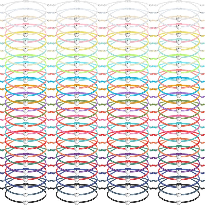 Cunno 100 Pcs Friendship Bracelets Bulk Heart Bracelets Colorful Adjustable String Star Motivational Gifts for Women (Heart Style)