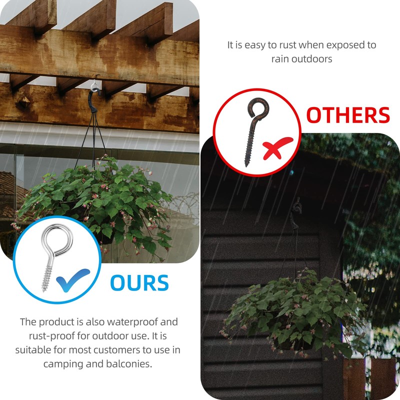 - ✔️ Good Material - Screw in eye hooks are made of nickel plated carbon steel with strong corrosion resistance/ rust resistance, durable and suitable for indoors and outdoors installations.
