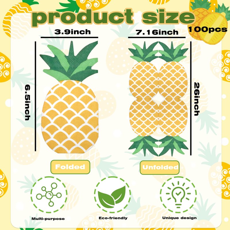 - 【Wide Range Applications】:The pineapple napkins are suitable for summer themed party, birthday party, fruit themed party,bridal shower party, baby shower party, anniversary party, beach party, or family gathering party, bring much more convenience to you.
