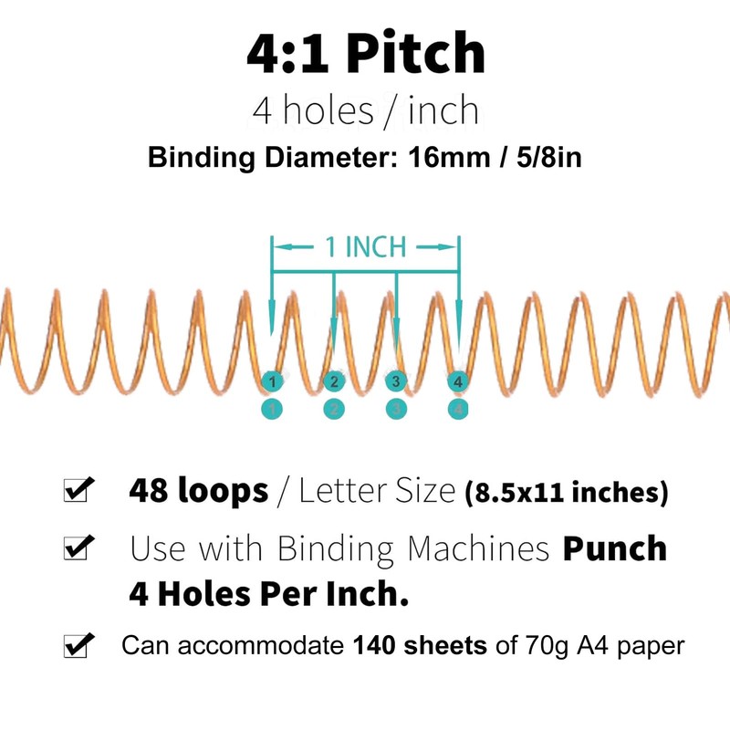 - [4:1 Pitch 48 Loop] These spiral binding coils are compatible with any binding machine that punches 4 holes per inch, ensuring a secure and professional binding.