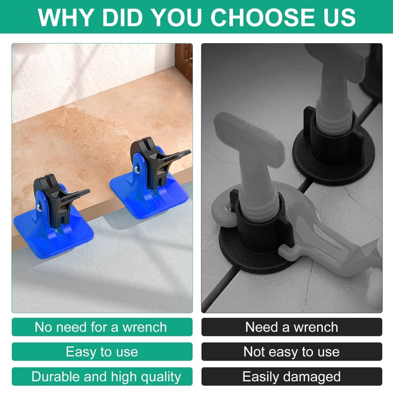- Strong and robust: our blue reusable pull tab tile levelling system set made of manganese steel, which is harder and more durable than ordinary stainless steel. The arched steel needle protects your tiles from scratches.
