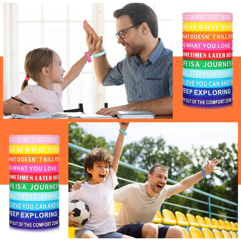 • Inspiradoras y motivadoras: nuestras inspiradoras pulseras de goma están impresas con mensajes inspiradores y bonitos gráficos para motivarte y mantenerte motivado