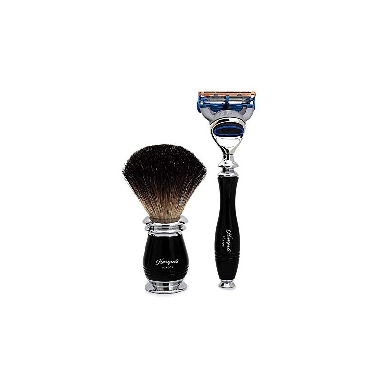 - 100% Pure Black Badger Hair Brush with Black & Metal Handle & Gillette Fusion Razor with Black Handle Perfect set for smooth finish. For men