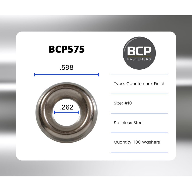 100 Qty #10 Stainless Steel Countersunk Finish Washers | 304 SS Finishing Cup (BCP575)