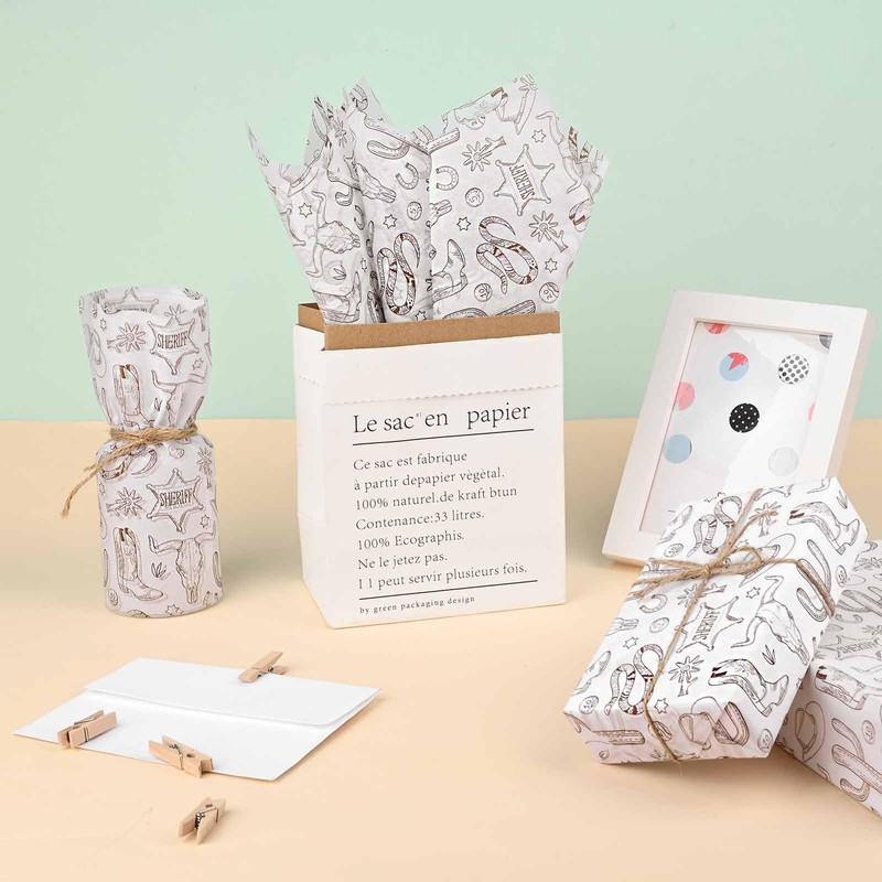 - Premium Material:The western cowboy print tissue sheets are made of premium, recyclable, durable, textured, and not easy to tear off. It is a good choice for packaging.Please note that these gift tissue paper are printed on one side.