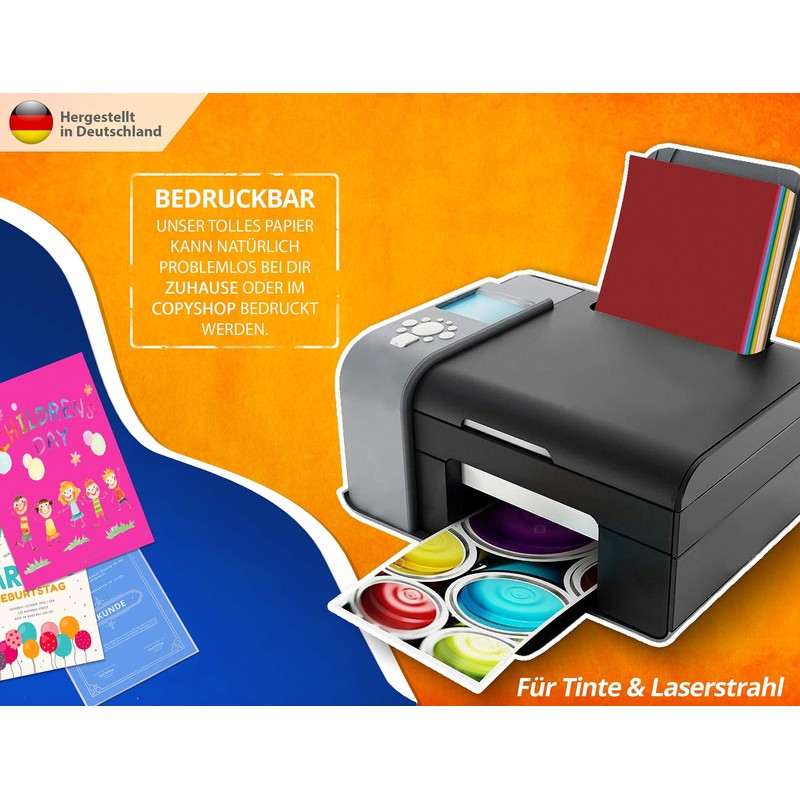 • Printable at home: our paper is easy to print in your printer. Both inkjet and laser printers have a very nice print image. Please select the paper type "cardboard" in the printer.