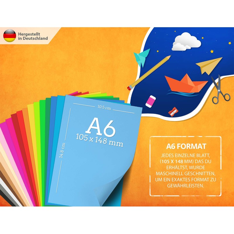 100 Sheets of Clay Paper - Colourful Paper DIN A6 130 g/m² Set 20 Colours - S...