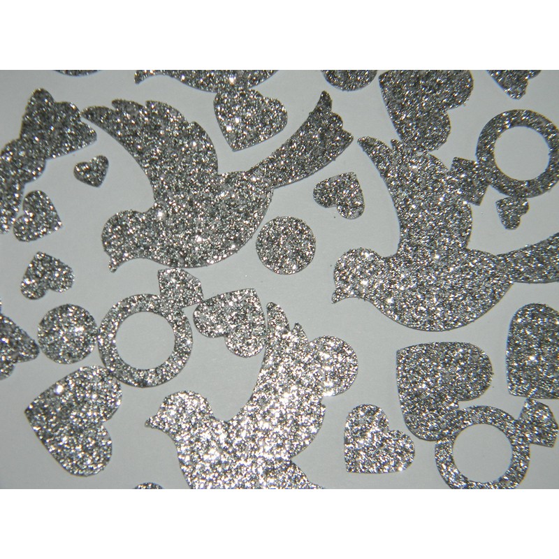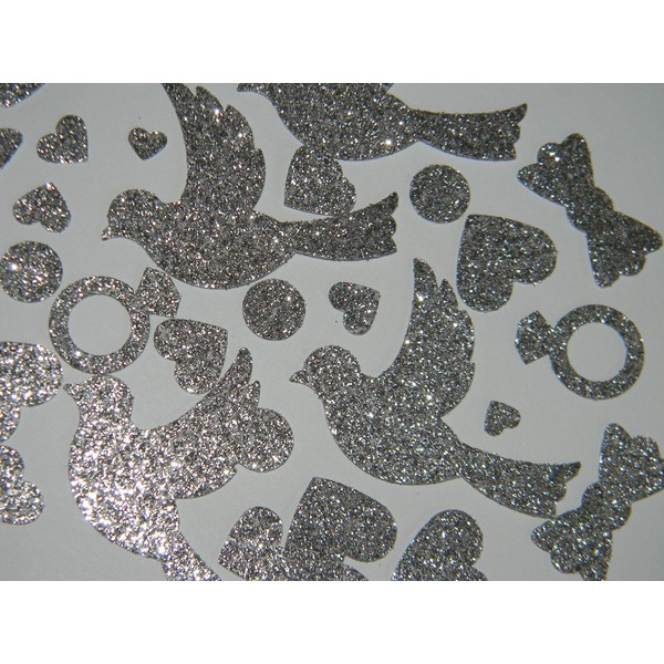 100 Silver glitter wedding die cuts confetti shower decor party supplies