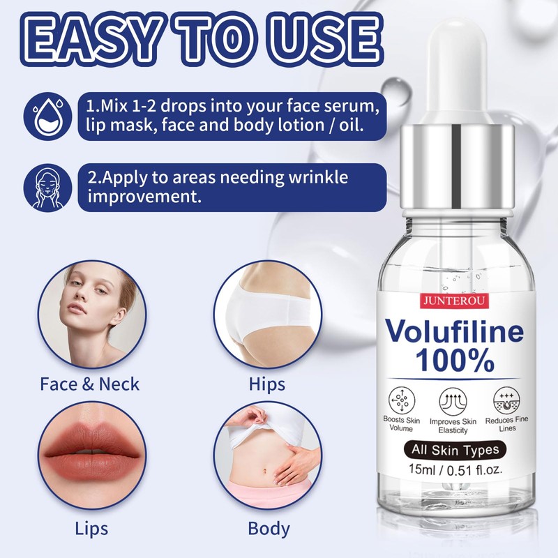 - GENTLE FORMULA: Secure for sensitive skin, this volufiline serum under eye hydrates and nourishes without irritation. Ideal for daily use, apply to face and areas prone to wrinkles or volume loss, such as the buttocks, breasts, and arms. Reveal a plumper, smoother complexion with lasting use.