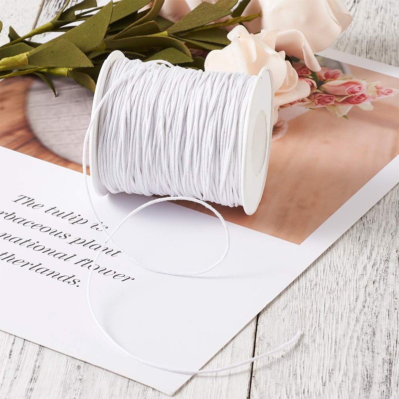 - 【Package includes】1 roll x 100 yards waxed cotton cord, about 1mm in diameter. Color: White.
