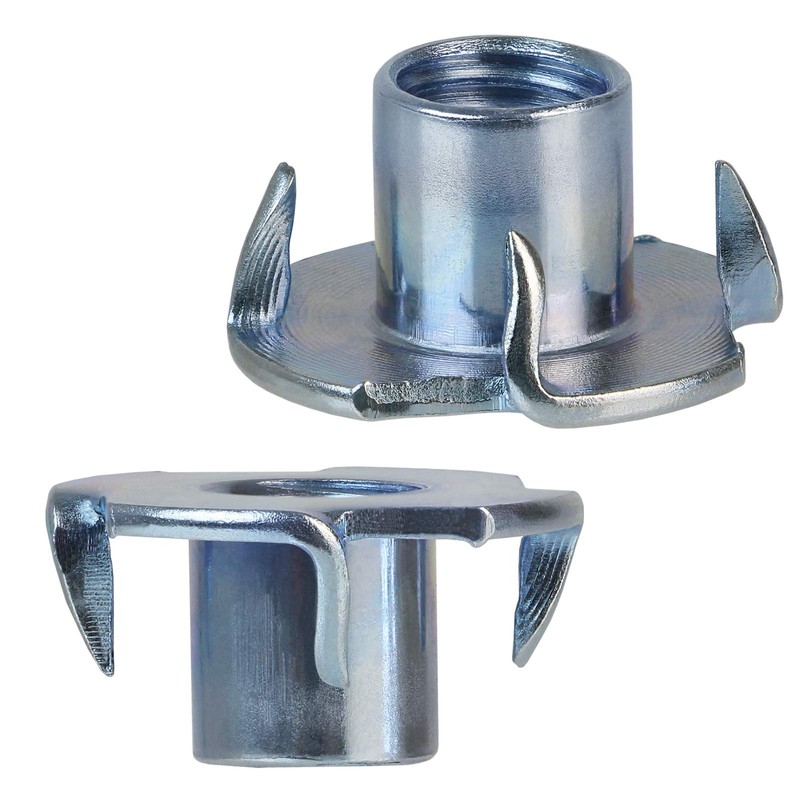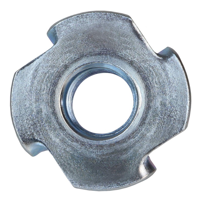 - HOCHWERTIG: Vier Spitzen verhindern das Verdrehen der Mutter * sie graben sich beim Einschlagen und Festdrehen der Schraube tief ins Holz ein * Besonders robust mit 7,8 g Gewicht pro Mutter