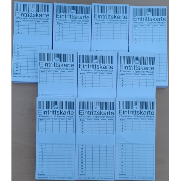 - PACK SIZE: Set of 1000 white entry tickets for mini golf, ideal for recreational facilities and mini golf courses