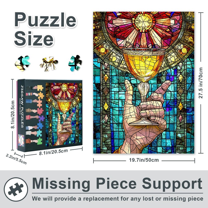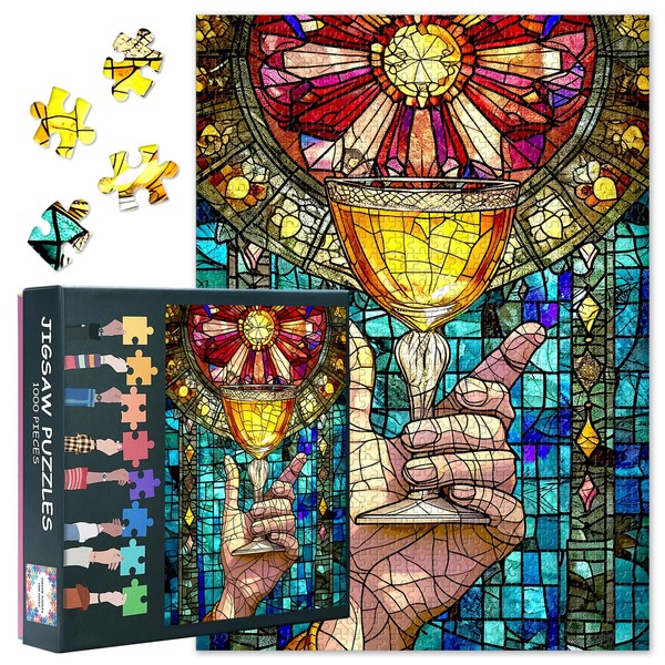 1000 Pieces Puzzle Holy Communion Religious Artwork for Adults Family Activity Motif with Coloured Glass Style Gift Hanging Decoration Puzzle 50.5 x 70.5 cm