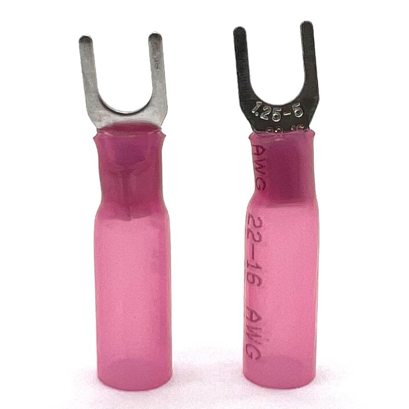 (1000 Pieces) Red Heat Shrink Marine Grade #10 U-Type Fork Connectors, American Wire Gauge 22-18