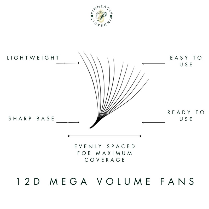 1000 Premade volume fans | 12D | 0.05 | Handmade loose fans for professional eyelash extensions | | Pinneacle Lash | Made in Vietnam | (CC curl - 10mm)
