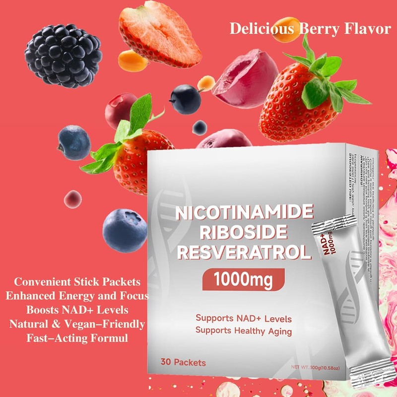 Liquid NAD Supplement 1000mg Pure Organic, NAD 1000mg Liquid 30 Packets,Berry Flavor Sticks for Anti-Aging, Energy, Focus
